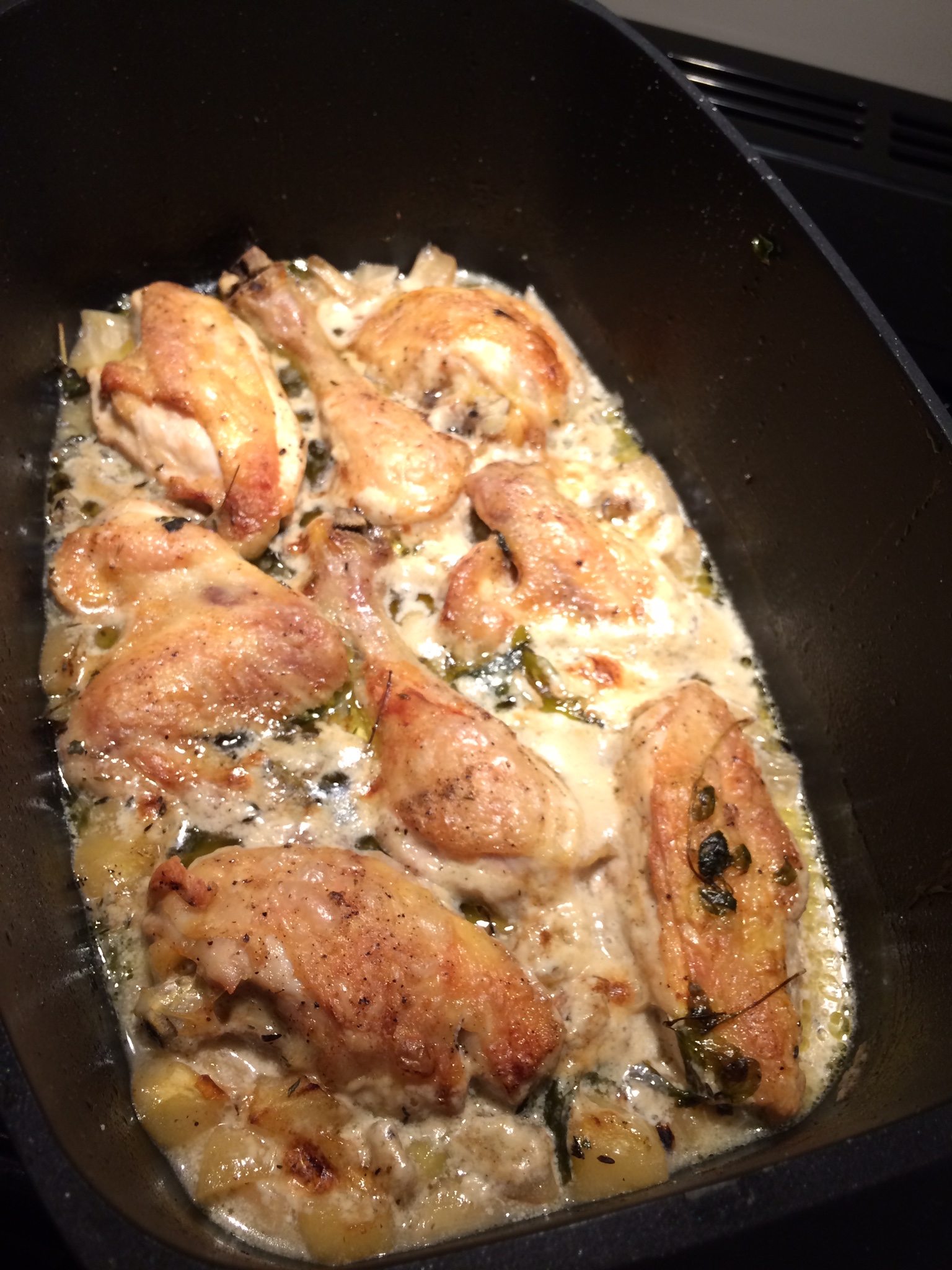 SKREI-BÄCKCHEN IM KARTOFFEL-APFEL-AUFLAUF