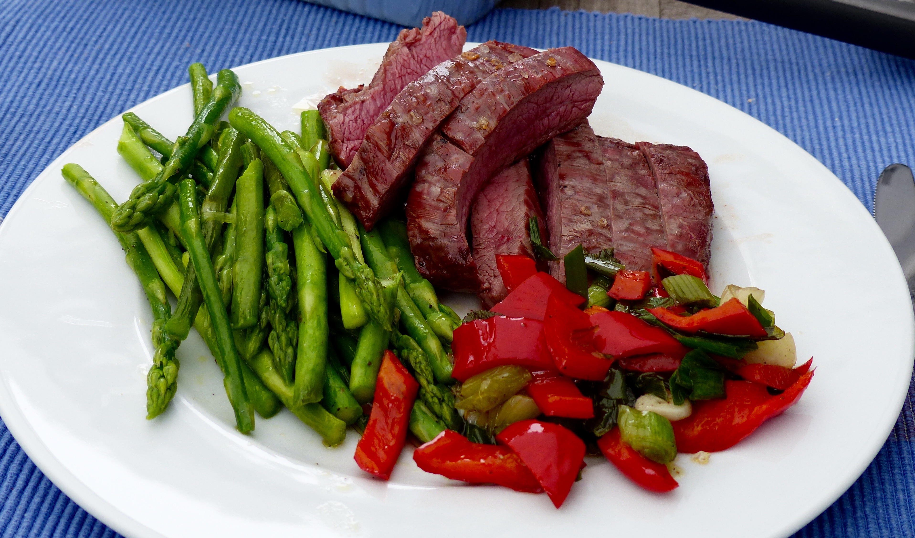 Flanksteak mit jungem grünem Spargel und Paprika-Gemüse vom Grill 28. Mai 2016 3834 × 2256 Flanksteak vor dem Gewitter