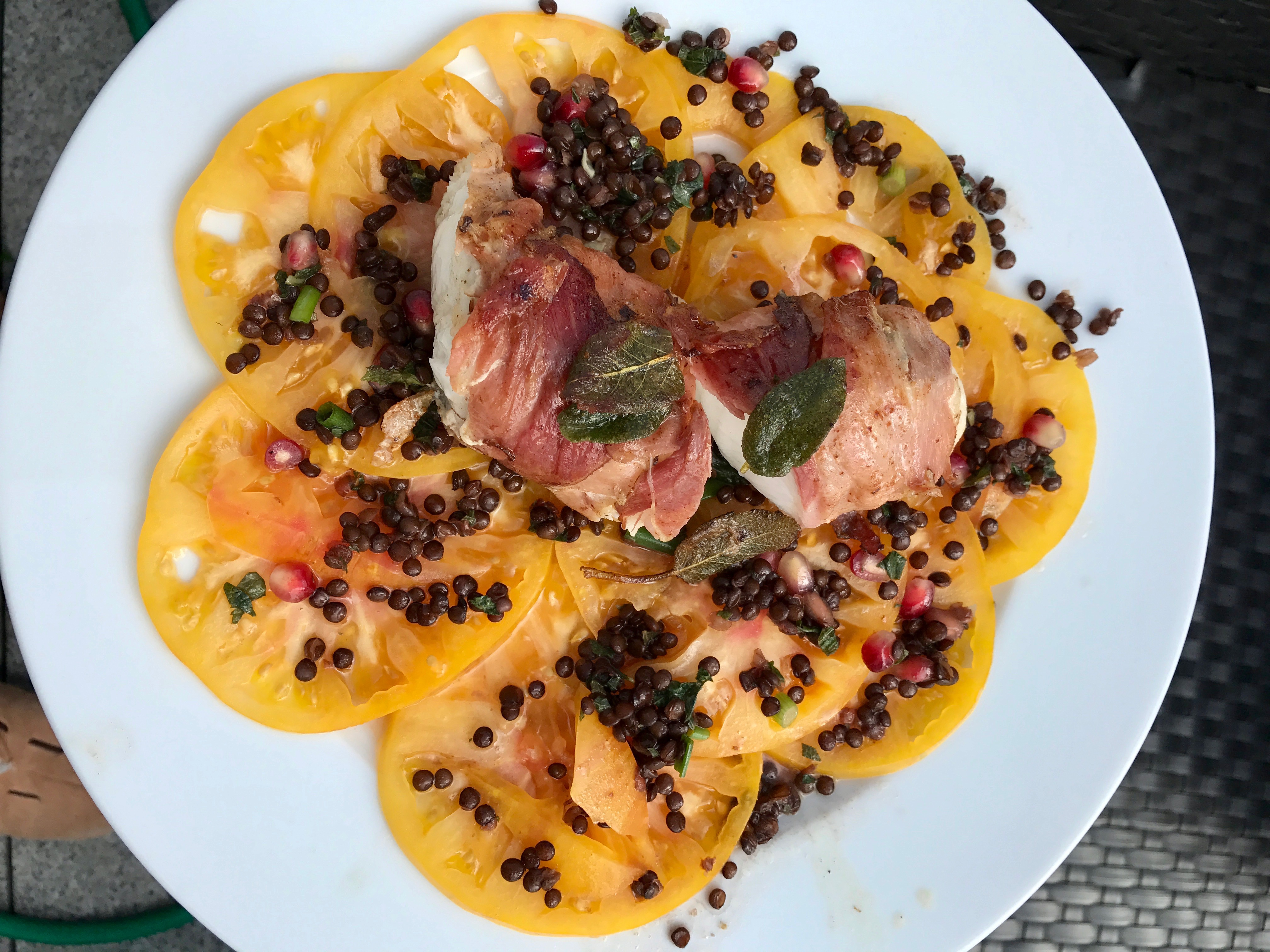 Seeteufel auf Tomatencarpaccio und Linsensalat 15. Juli 2017 4032 × 3024 Seeteufel auf Ananastomate und Linsensalat