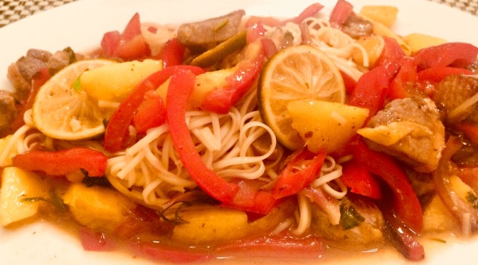 Dazu gab es ein paar dünne Thai-Nudeln, Reis wäre sicher auch gegangen.