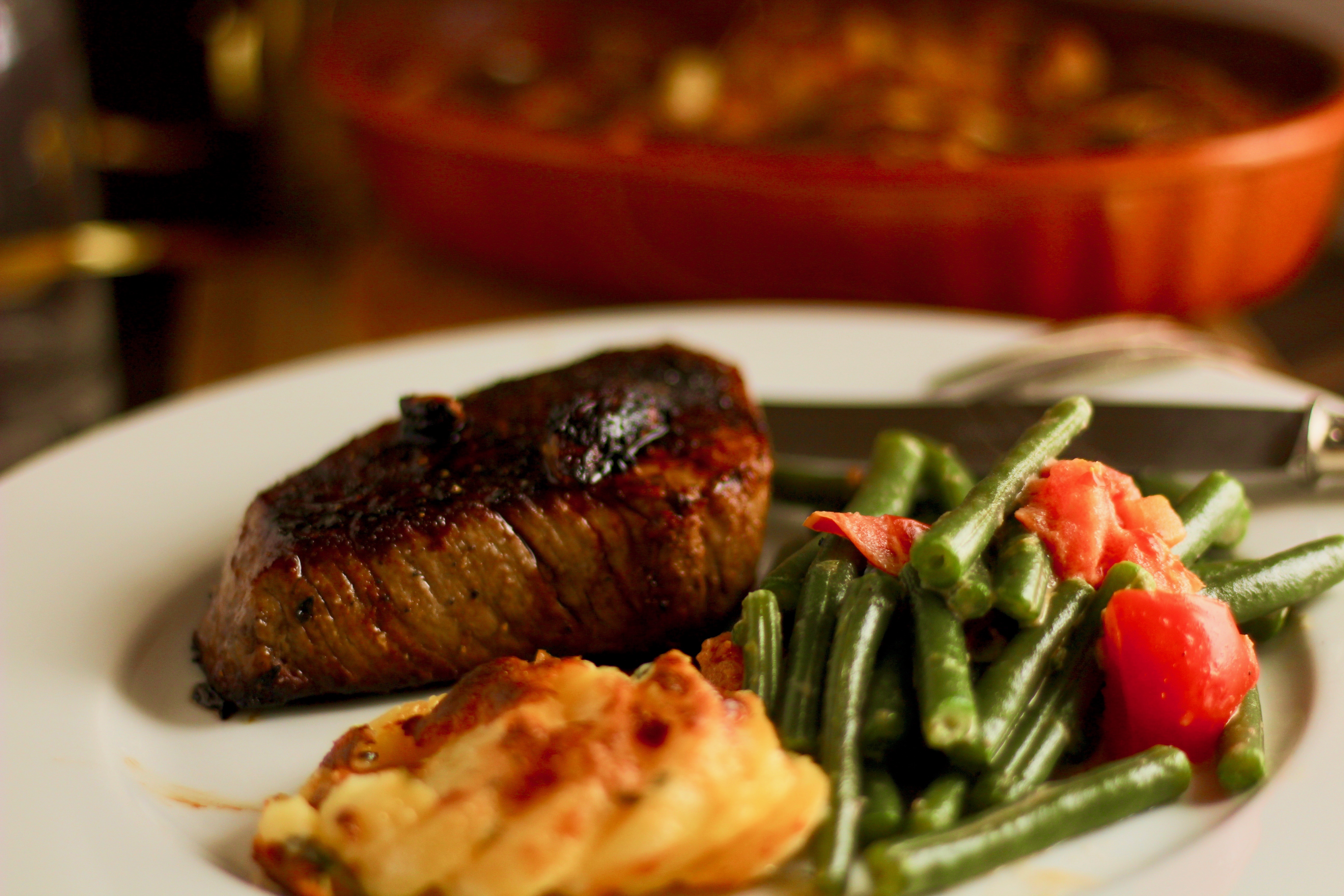 Hüftsteak mit Böhnchen und gratinierten Kartoffeln 3. März 2018 5184 × 3456 Hüftsteak mit grünen Bohnen