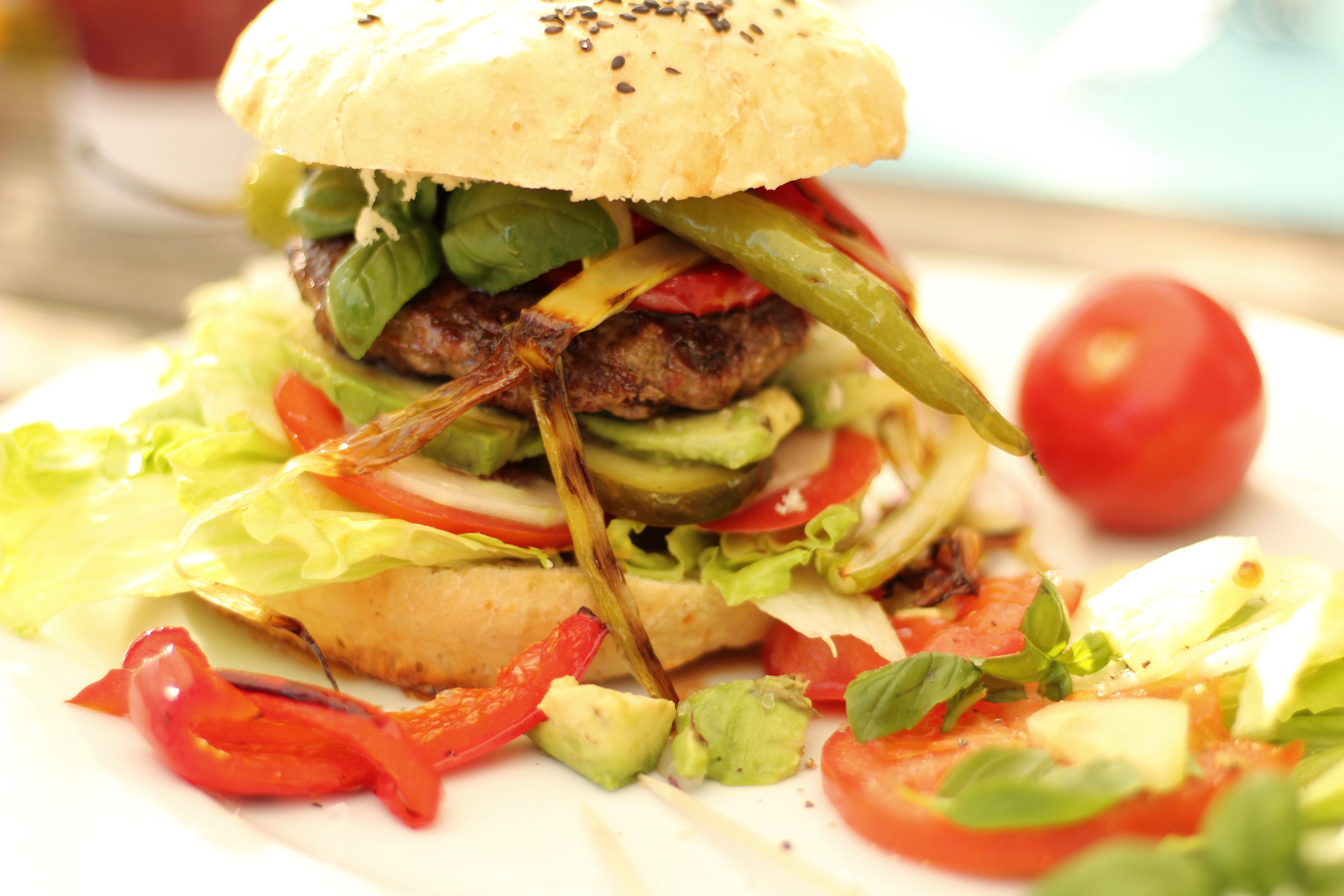 Üppig belegter Hamburger mit Dry-aged-Beef