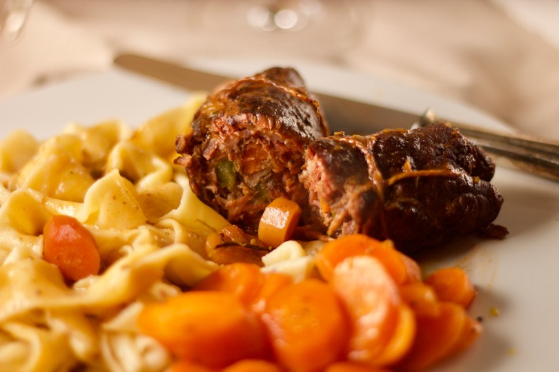 Rinderroulade Detail 30. November 2019 5184 × 3456 Geduldsprobe Schmoren – die Rinderroulade Roulade gefüllt mit Bauchspeck, Gürkchen und Möhrchen