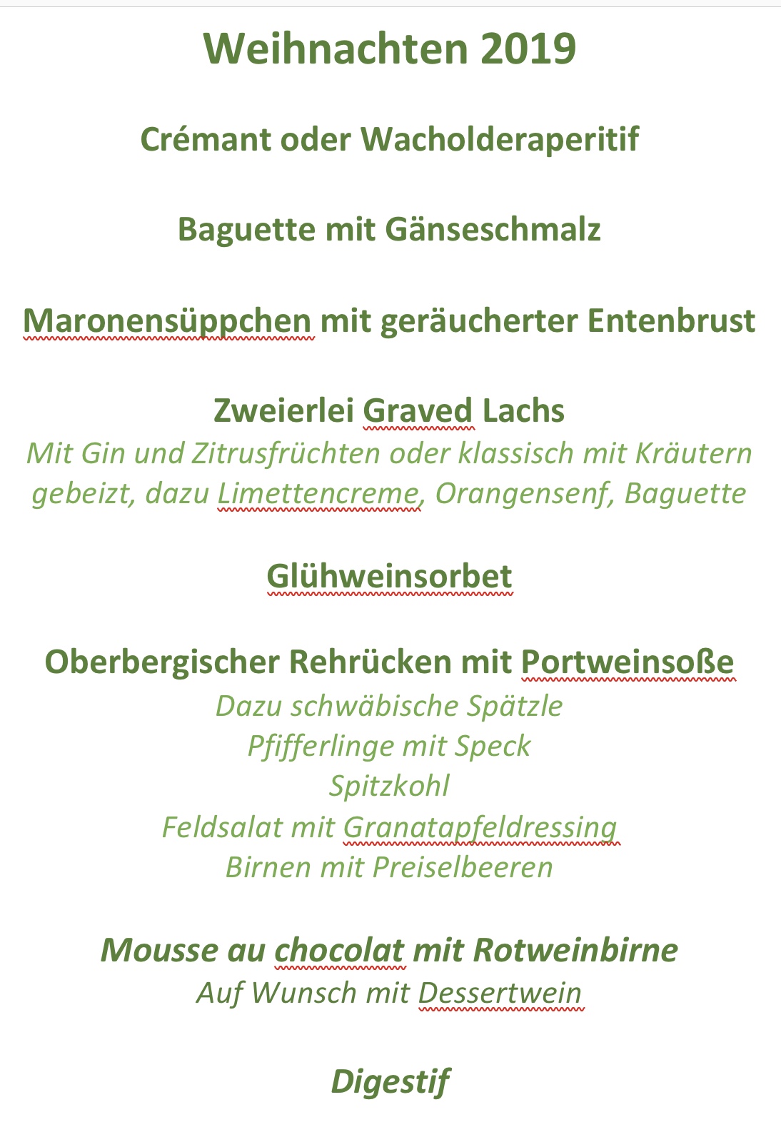 Weihnachtsmenü 2019