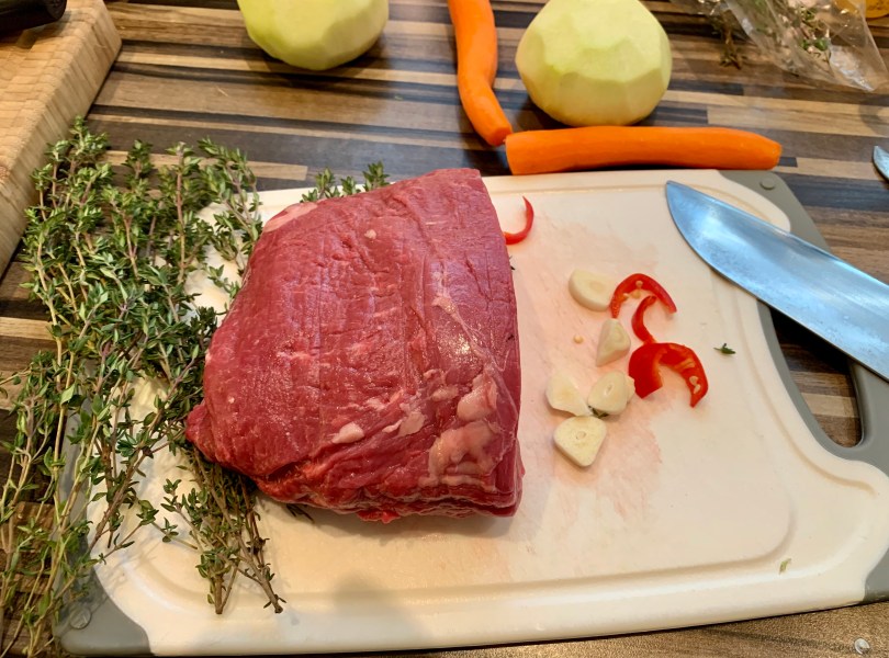 Beef aus Argentinien 8. März 2020 3912 × 2900 Tranchen von der Hüfte mit Kartoffel-Kohlrabi-Ragout eine halbe Hüfte