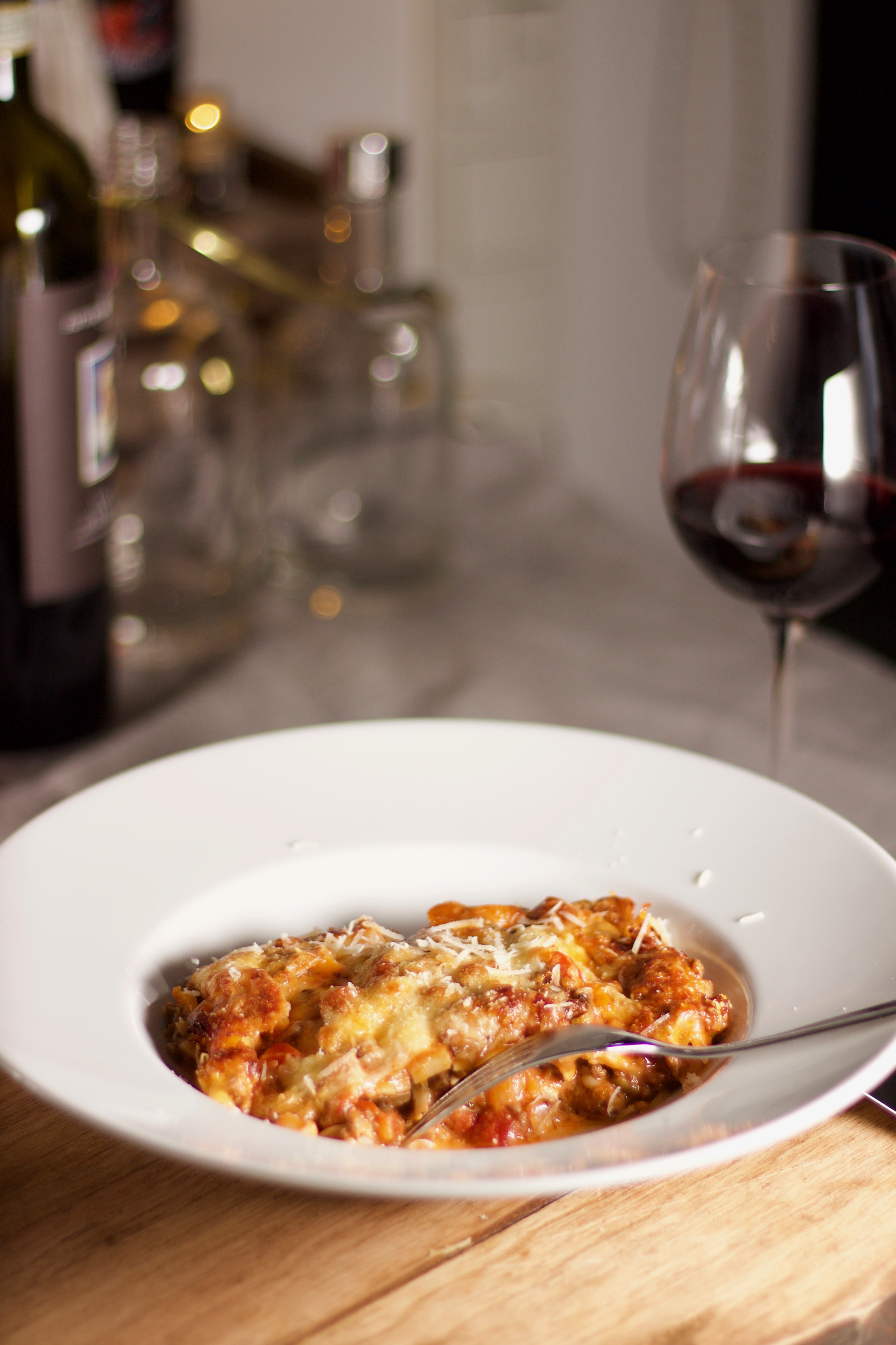 Lasagne mit Bolognesesoße, Paprika und Pilzen
