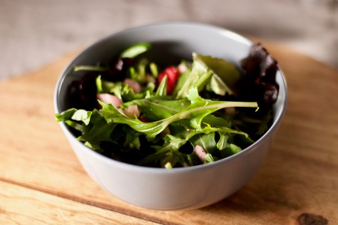 Kleiner Salat mit Rucula, Feldsalat und Weißwein-Schalottendressing