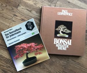 richtige Bonsais aus dem Buch – mit Mädchenkiefer links unten